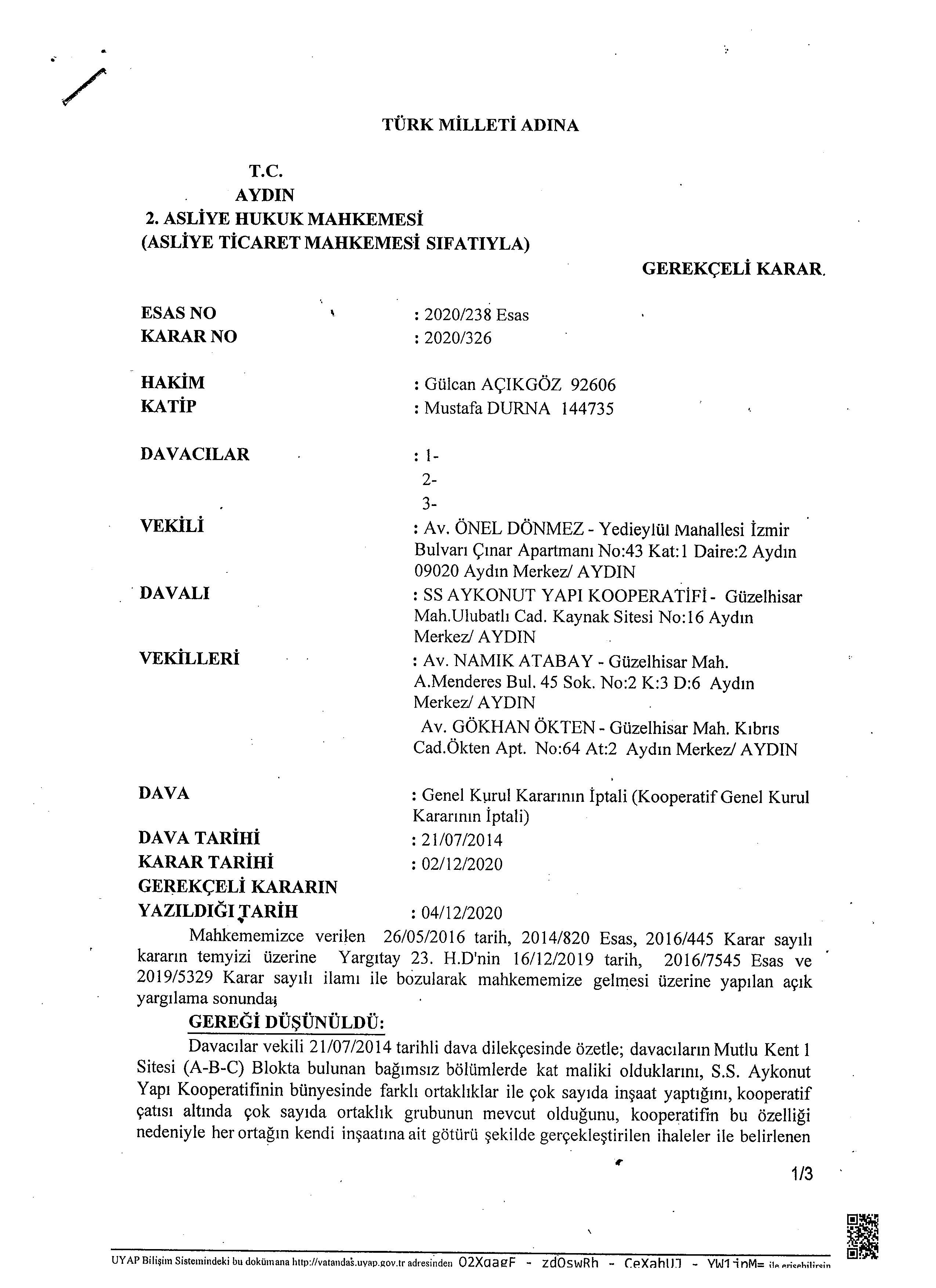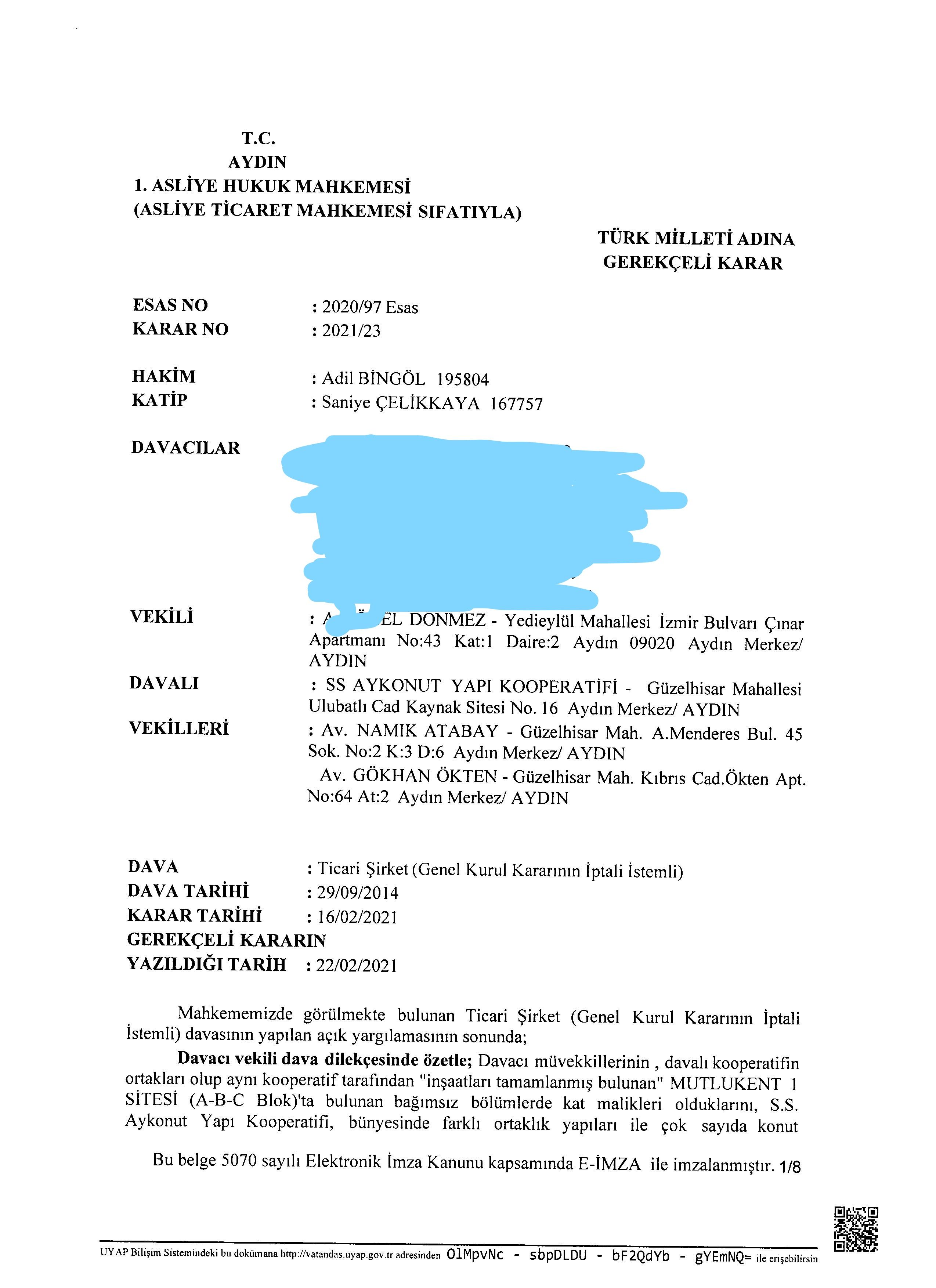 MUTLUKENT 1.KISIM GEN.KUR.KAR.İPTAL DAVASI
