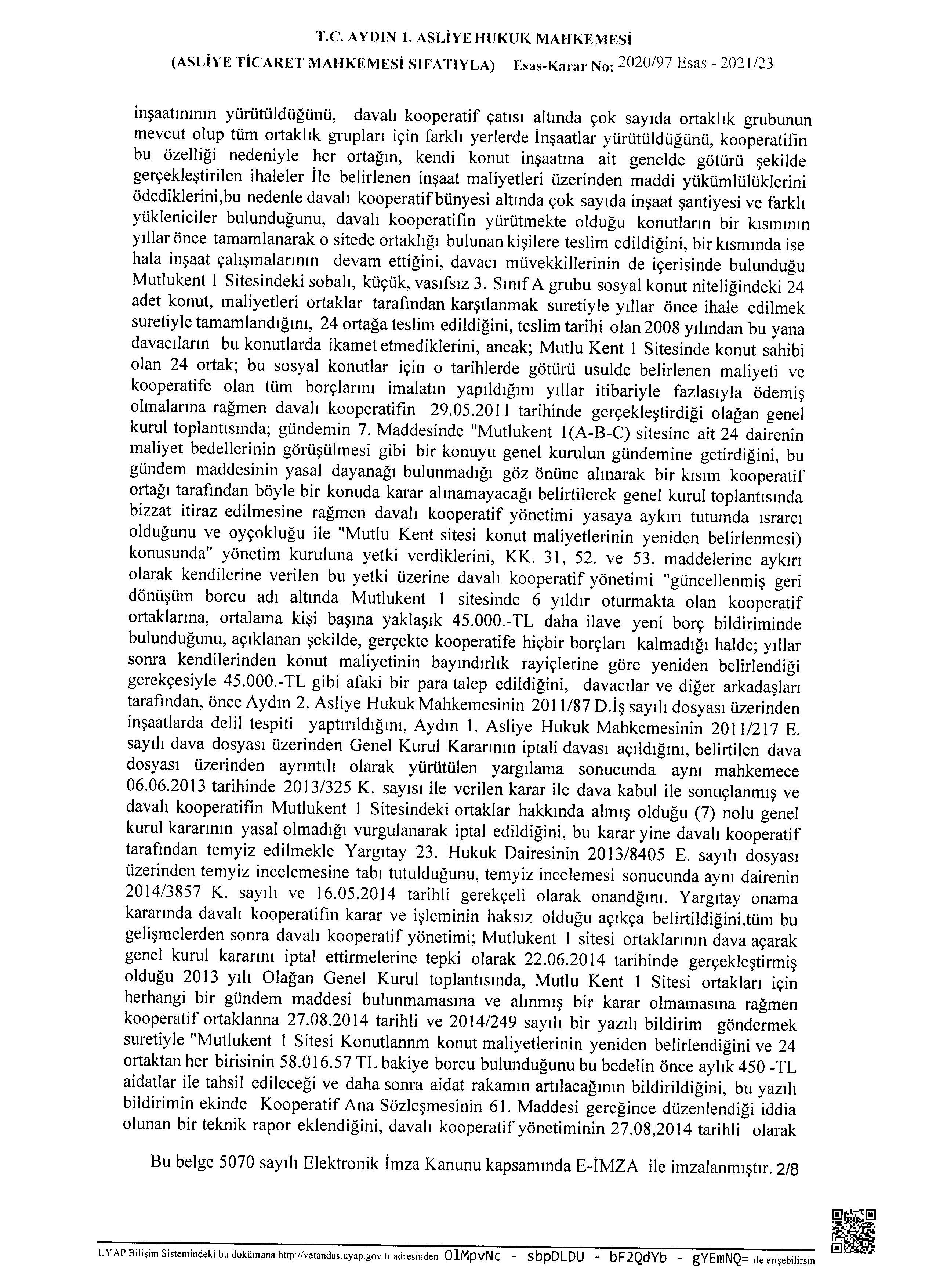 MUTLUKENT SİTESİ 1.KISIM DAVASI