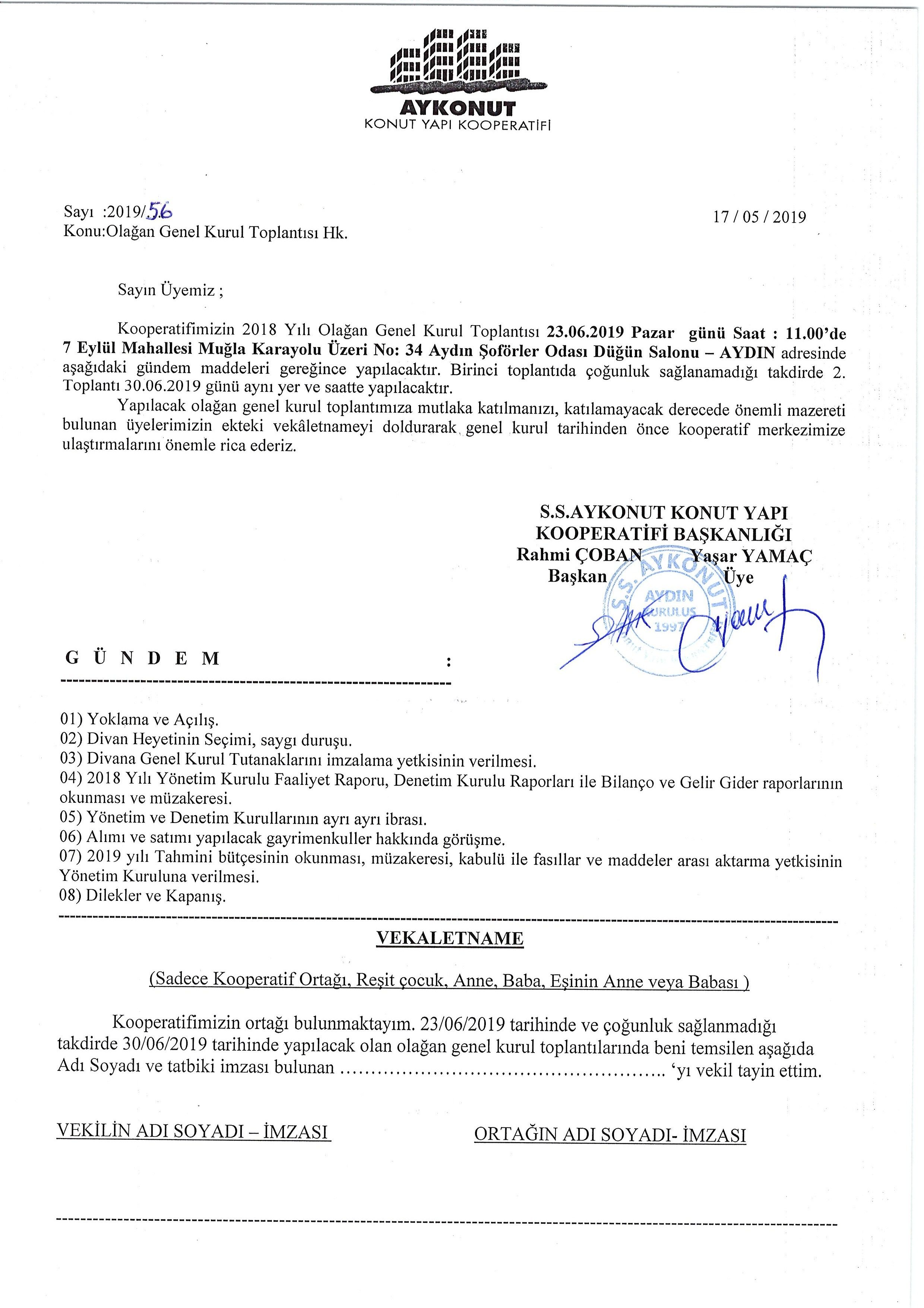 GENEL KURUL SONUÇLARI HK.