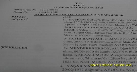 CUMHURİYET SAVCILIĞI KARARI HK.